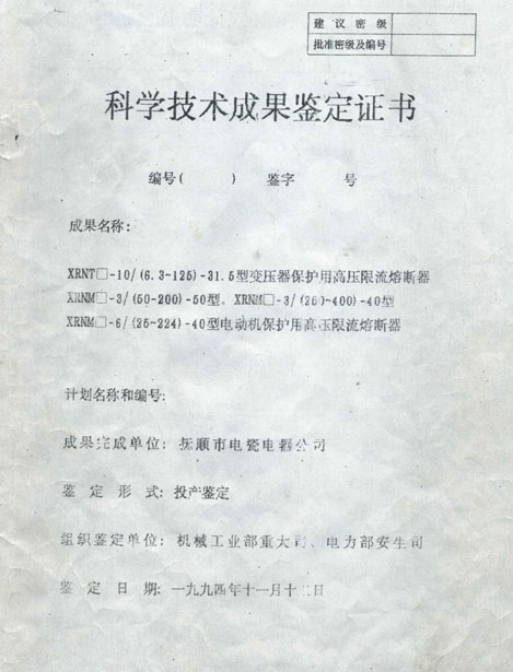 撫順電瓷廠電瓷電器公司是原機(jī)械工業(yè)部定點(diǎn)生產(chǎn)高壓隔離開關(guān)、高壓熔斷器、絕緣子、避雷器的骨干企業(yè)之一。生產(chǎn)歷史悠久,技術(shù)力量雄厚,產(chǎn)品質(zhì)量可靠,產(chǎn)品遍及全國,遠(yuǎn)銷國處。具備高壓隔離開關(guān)、高壓熔斷器的設(shè)計(jì)、開發(fā)及批量生產(chǎn)的能力。擁有英國BRUSH公司具有國際先進(jìn)水平的高壓熔斷器制造技術(shù)和生產(chǎn)線關(guān)鍵設(shè)備,完備的檢測儀器。能夠批量生產(chǎn)符合國家和國際標(biāo)準(zhǔn)的3.6kv-40.5kv各種規(guī)格的戶內(nèi)外高壓隔離開關(guān)、高壓限流熔斷器系列產(chǎn)品。產(chǎn)品在國家高壓電器質(zhì)量監(jiān)督檢測中心通過全部型式并取得了兩部鑒定和型號(hào)證書,是國家經(jīng)貿(mào)委城農(nóng)網(wǎng)改造的推薦產(chǎn)品,通過了ISO9002國際質(zhì)量體系認(rèn)證,曾榮獲機(jī)械部科技進(jìn)步二等獎(jiǎng)和地方優(yōu)秀新產(chǎn)品獎(jiǎng)。